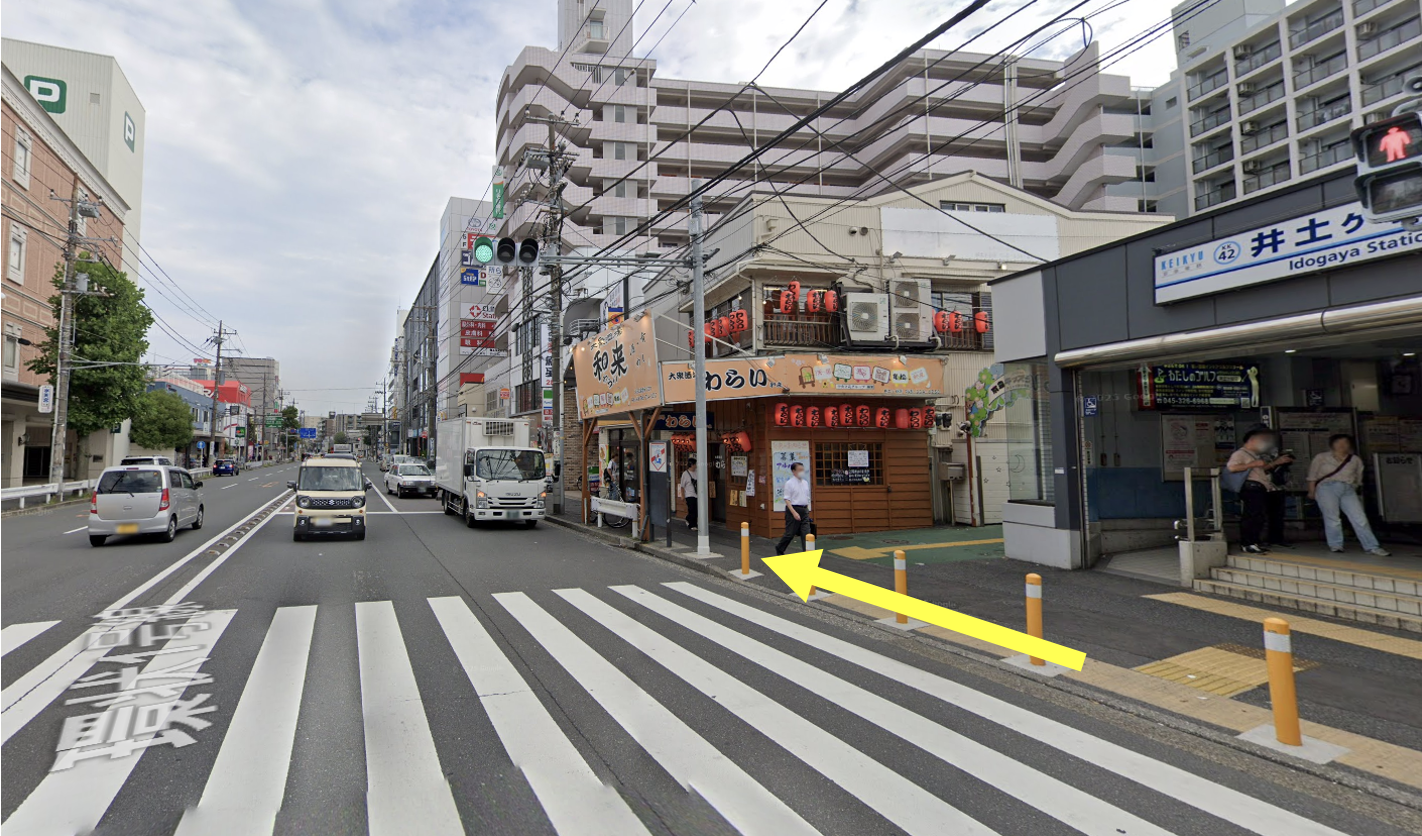 井土ヶ谷駅出口を出たら右に進みます。