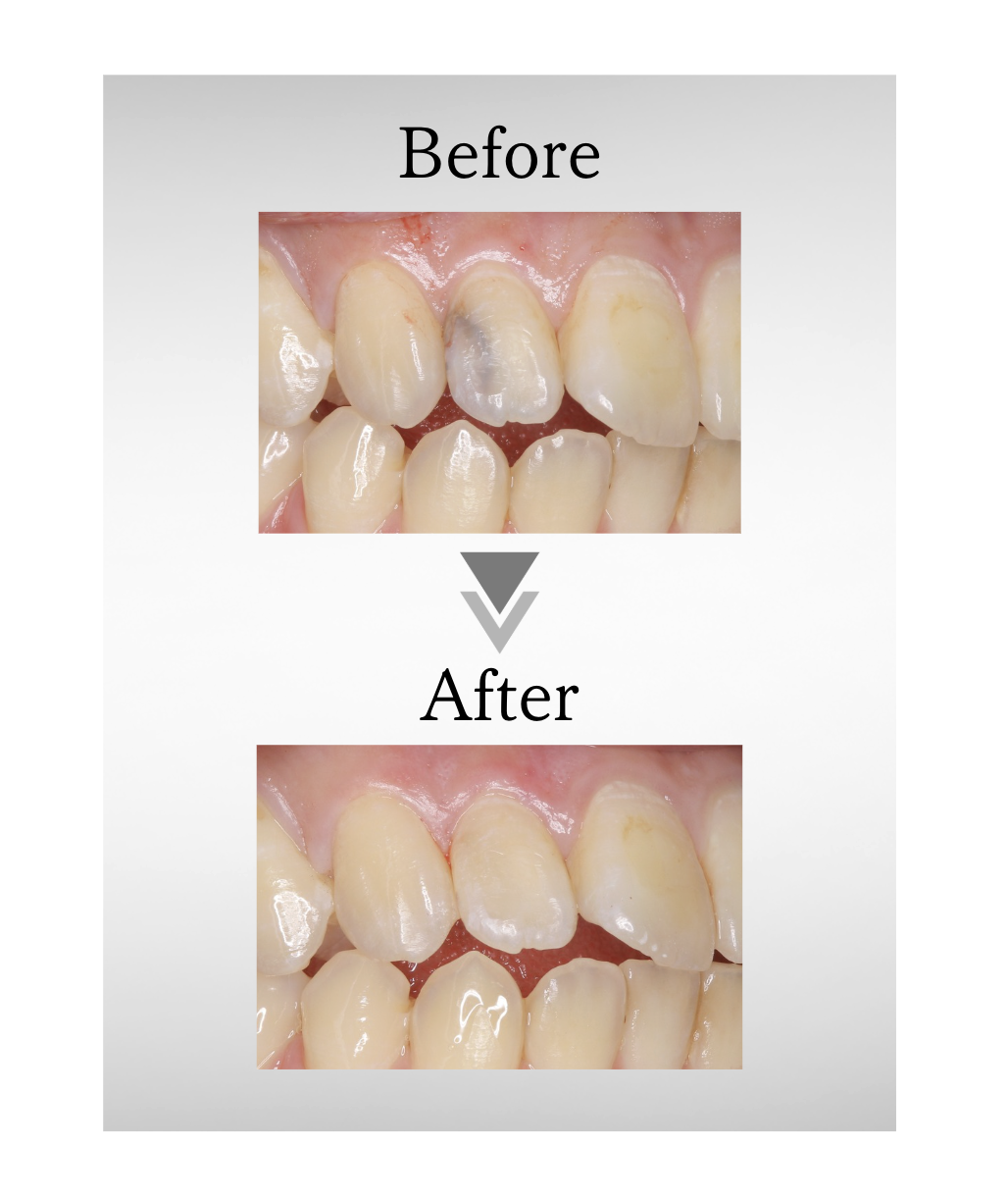 歯の神経が死んでしまった失活歯や無髄歯が黒ずむ現象は、多くの患者様にとって大きな悩みのひとつです。特に前歯など、日常のコミュニケーションで目立つ場所に変色が生じると、その影響は見た目や自信にも関わることがあります。しかし、通常のホワイトニングではこの変色を改善することはできません。 ウォーキングブリーチは、失活歯の内部に漂白剤を入れ、内側から変色を除去して白さを取り戻す治療法です。外見だけでなく、患者様の笑顔にも自信を取り戻していただけるホワイトニング技術です。
