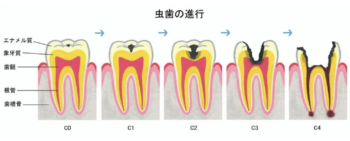 むし歯は、口腔内のむし歯菌が食べ物や飲み物の糖分を分解にして酸を生成し、その酸によって歯が溶けていく状態です。