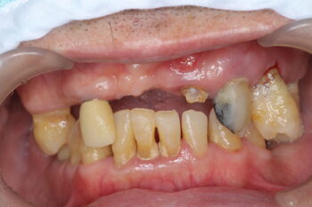 歯の保存が難しい場合が多いです。抜歯を検討し、インプラント・ブリッジ・入れ歯で機能回復を行います。